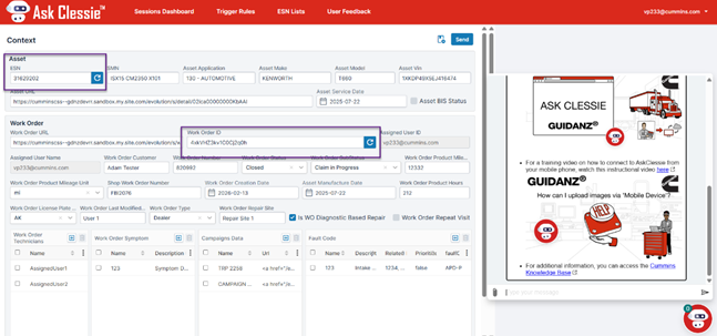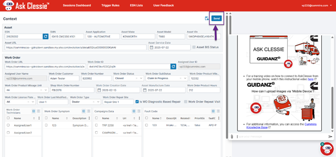 will re-evaluate the context and Ask Clessie will show up if the updated