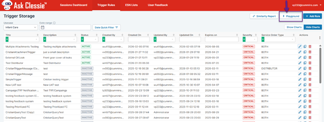 to play with the triggers using the trigger playground. It allows the Chatbot